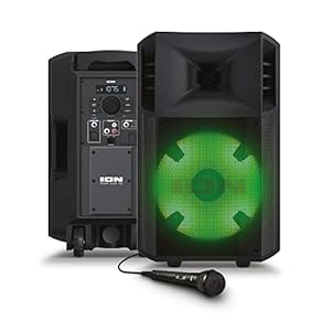 ION Audio Power Glow – 300-Watt Bluetooth-Lautsprecher mit Karaoke-Mikrofon, Lichtern, Multikanal-Mixer und wiederaufladbarer Batterie