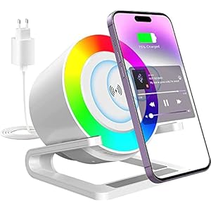 JANOLTY Bluetooth Lautsprecher mit Nachtlicht und kabellosem Ladegerät,Mit 5 RGB-Licht-Modi,Spieldose und Induktive Ladegeräte,Geschenke für Freund und Freundin