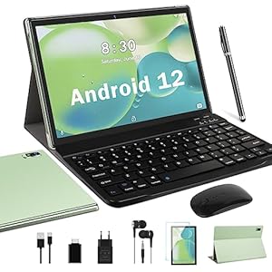 Oangcc 10 Zoll Android 12 OS Tablets Con 5G WLAN, GMS -Zertifizierung, 8 Core 2.0 GHz, 64GB ROM (TF 4-512GB), 8000mAh, 5+8MP, Bildschirm-Widgets, 2 in 1 Tablet mit Tastatur+Maus+Fall – Grün