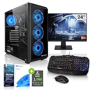 Megaport Komplett Set PC Gaming PC AMD Ryzen 7 5700G • 24″ Monitor • Windows 11 • AMD Radeon Vega 8 • 16GB DDR4 • 500GB M.2 SSD • 1TB HDD • Tastatur • Maus • WLAN • pc Gaming Computer komplettpaket