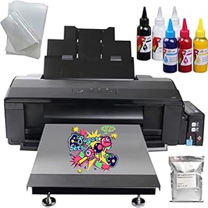 A3+ DTF T-Shirts L1800 Druckermaschine für Stoffe, Leder, Spielzeug, Badebekleidung, Handwerk, T-Shirt, Kissen, andere Textilien. (DTF-Drucker + 6 x 100 ml Tinte + 100 Stück PET-Folie)