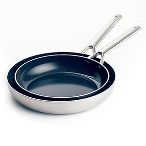 Blue Diamond Cookware Triple Steel Edelstahl Keramik Antihaft 2-teiliges Bratpfannen-Set, 24 cm und 26 cm, Tri-Ply, PFAS-frei, Mehrschichtig, Induktion, Spülmaschinenfest, Backofenfest, Silber