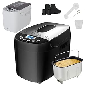 Arebos Brotbackautomat 1500g | mit 15 Programmen | 2 Knethaken | Timer | LCD Display | 3 Bräunungsgrade und Brotgrößen | 850 W | Schwarz