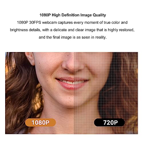1080P High Definition-Bildqualität: Die 1080P 30FPS-Webcam erfasst jeden Moment mit echten Farb- und Helligkeitsdetails, mit einem zarten und klaren Bild, das in hohem Maße wiederhergestellt wird und das endgültige Bild so aussieht, wie es in der Realität zu sehen ist.