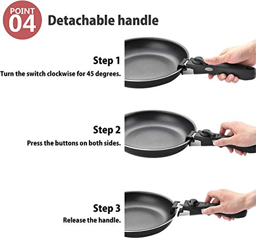 Verwendung als Servier- oder Aufbewahrungsschale. Nestable pans make it easy to stow away and can be stacked neatly. Es kann Platz in der Küche sparen. Topf mit abnehmbarem Griff lässt sich abnehmen und sicher und sicher befestigen.