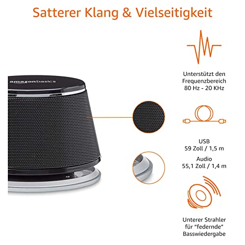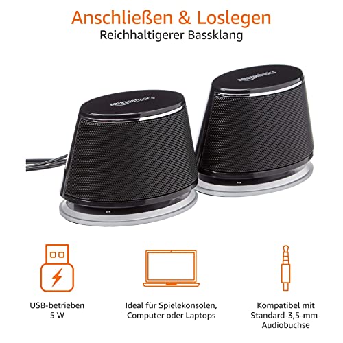 Hochleistungs-PC-Lautsprecher (1 Paar) mit USB-Betrieb (5 V) mit Spule an der Unterseite für einen „pochenden“ Bass