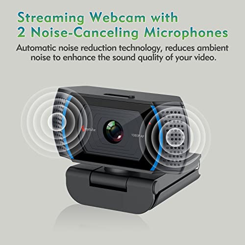 Webcam mit Dual-Mikrofonen Stereo-Audio-Ausgang: Kombinieren Sie unabhängige IC-Audio-Verarbeitung mit automatischer Rauschunterdrückungstechnologie perfekt mit Hintergrundgeräuschen. Bringen Sie klare und gründliche Kristall-Klangqualität, diese PC-Webcam ist perfekt für Online-Meetings, Unterricht, Videoanrufe, Facetime, Live-Streaming usw.