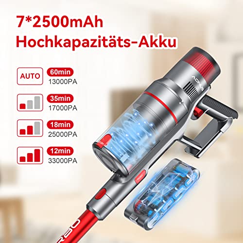 【7 * 2500mAh großer Akku】: Die Akkulaufzeit beträgt bis zu 60 Minuten und erfüllt den täglichen Reinigungsbedarf.