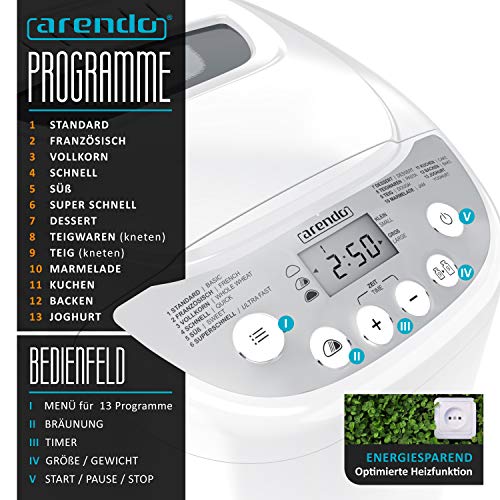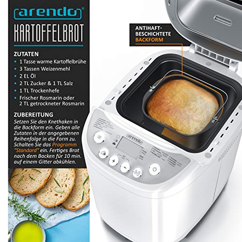 Gesund und lecker zugleich: Wer sichergehen möchte, dass genau die Zutaten in seinem Brot enthalten sind, auf die er Wert legt, der backt sein Mischbrot, Vollkornbrot oder Weißbrot einfach selbst. Mit den Komfortfunktionen des Arendo Brotbackautomaten haben Sie Freude daran, die Entstehung Ihres eigenen Brotes mitzuerleben. GS-zertifiziert. | 304943
