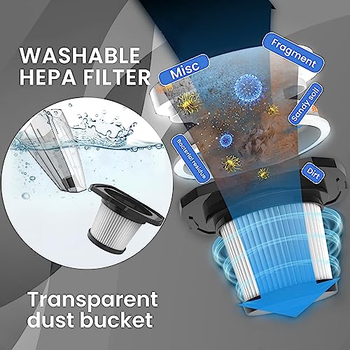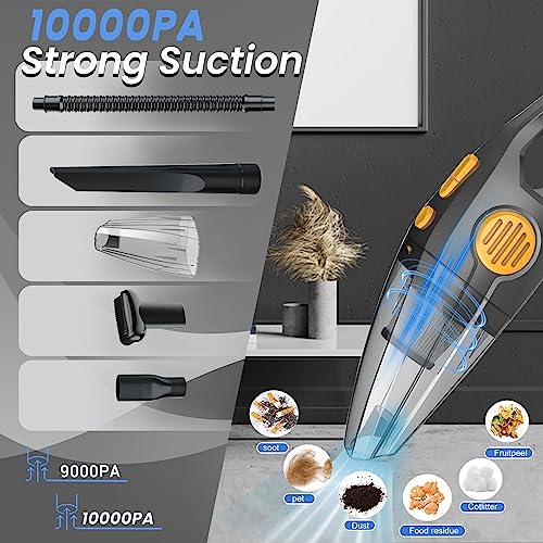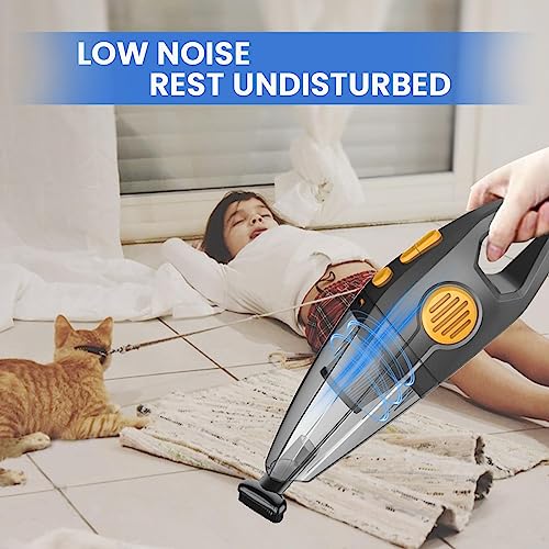 Kabellos und tragbar: Dieser Handstaubsauger benötigt keinen Draht, die kabellose Nutzung ist bequemer, geräuscharmes Design, der Zwei-Gang-Modus kann umgeschaltet werden. Die erste Adsorptionskraft beträgt 9000Pa, und die zweite Adsorptionskraft beträgt 10.000Pa.