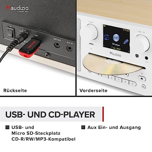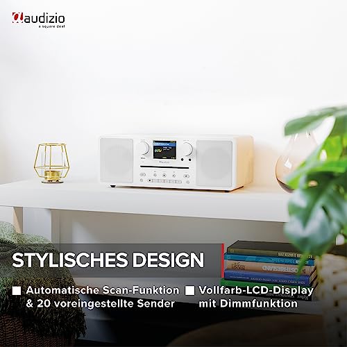 Alles in einem! Das Audizio Naples DAB+ Radio ist ein modernes Internet Radio um mit zahlreichen Möglichkeiten Musik zu hören. Ganz egal, ob Sie eine CD hören, Musik über Bluetooth streamen, Radio hören, oder Ihre eigene MP3-Wiedergabeliste abspielen möchten