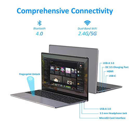 【FHD-Display & hintergrundbeleuchtete Tastatur】Tauchen Sie ein in eine klare, immersive Anzeige zu einem günstigen Preis. Dieser Laptop bietet einen atemberaubenden 15,6-Zoll-IPS-Bildschirm mit einer Randbreite von nur 0,2 Zoll und einem Bildschirm-zu-Körper-Verhältnis von 92%. Mit einer um 180 Grad erweiterbaren Anzeige sind Sie flexibel. Die beleuchtete Tastatur und das 6,3-Zoll-Touchpad mit Fingerabdruckerkennung machen das Tippen und Navigieren einfach und bieten zusätzliche Sicherheit.