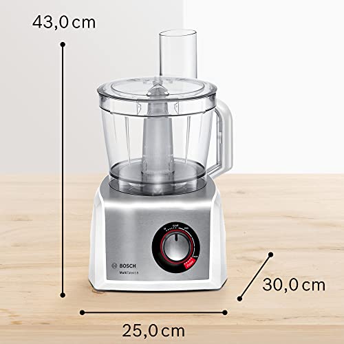 Bosch Kompakt-Küchenmaschine MultiTalent 8 MC812S814, 45 Funktionen, XXL-Rührschüssel 3,9 L, Mixer 1,5 L, Universalmesser, Rührbesen, schneiden und raspeln (fein,grob), 1250 W, weiß/edelstahl