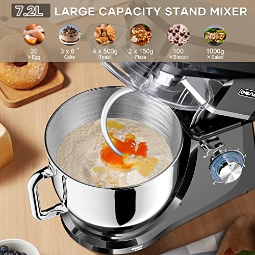 【7,2 l große Kapazität】Diese Knetmaschine verwendet Edelstahl 304 in Lebensmittelqualität, um die Lebensmittelsicherheit zu gewährleisten. Das große Fassungsvermögen von 7,2 L kann 1500 g Mehl aufnehmen, den Bedarf von 3-8 Personen in der Familie decken. Ausgestattet mit einem transparenten Deckel können Sie während des Gebrauchs nicht nur den Fortschritt der Lebensmittelproduktion sehen, sondern auch das Spritzen von Lebensmitteln verhindern.