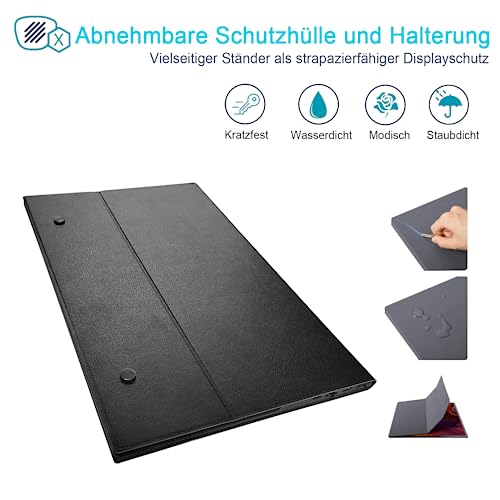 【Strapazierfähiger kratzfester Smart Cover Stand】– Kommt mit einem abnehmbaren smarten Bezug, der aus hochwertigem PU-Leder gefertigt ist, leicht auf der Reise zu tragen. Rutschfest, kratzfest, wasserdicht und staubdicht. Schützen Sie Ihren Bildschirm als Abdeckung, wenn Sie ihn unterwegs in Ihren Rucksack legen. Er lässt sich den ganzen Tag über fest am tragbaren Monitor festhalten und rutscht nie ab. Zwei faltbare Rillen ermöglichen bequeme Blickwinkel.