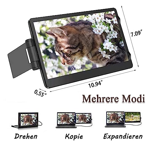 Betrieb mit zwei Bildschirmen realisieren — Der tragbare Monitor ist ein tragbarer 11,6″ FHD Monitor, der sicher an der Rückseite Ihres Laptops befestigt wird, um die Produktivität der Arbeit auf zwei Bildschirmen mit der Portabilität eines Laptops zu kombinieren.
