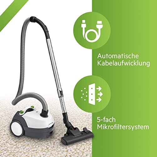 Mit den energiesparenden 700 Watt eignet sich der Sauger perfekt für Teppiche- und Hartböden. Der Vacuum Cleaner erfasst mit seinem 5-fach Mikrofiltersystem Staub, Tierhaare, Krümel uvm.