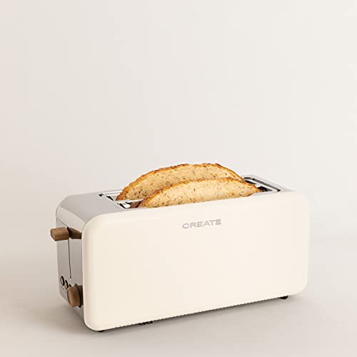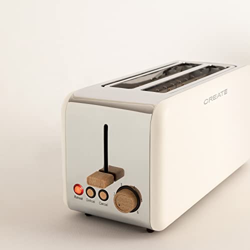 CREATE/TOAST RETRO XL/Creme Toaster / 6 Leistungsstufen, Krümelschublade, Thermostat, Auftauen, Aufwärmen, 2 breite Scheibenschlitze, 1500W