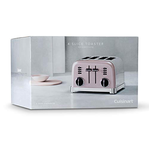 Stilvoller 4-Schlitz-Toaster mit pastell-rosanem Finish und polierten Chrom-Details