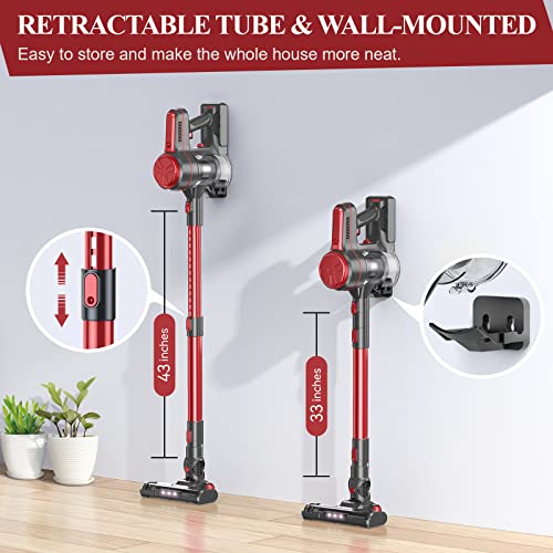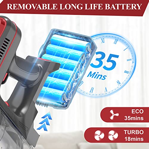 🚗【35 Minuten Autonomie】Der kabellose Besenstaubsauger ist mit einem 2200mAh Li-Ionen-Akku im Eco-Modus (35 Minuten) und Turbo (20 Minuten) ausgestattet. Außerdem lässt es sich zum einfachen Aufladen und Batteriewechsel zerlegen, und es dauert nur 4 Stunden, um vollständig aufzuladen, was zuverlässige Leistung für Reinigungsarbeiten bietet.