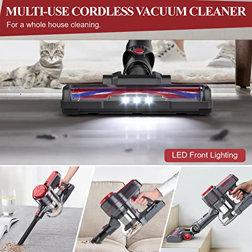 🎈【Flexibles Licht und LED-Licht verwenden】Der Staubsauger ist mit einem höhenverstellbaren Teleskoprohr ausgestattet, mit dem hohe Stellen und Vorhänge gereinigt werden können. Der lautlose Ladekopf kann um 180° nach links und rechts geschwenkt werden, und der Schwenk um 90° nach oben und unten, sodass Sie den Staubsauger mit Leichtigkeit bedienen können. Dieser kabellose Staubsauger mit Teppichbeutel verfügt über 3 LED-Leuchten am Kopf, um Ihnen zu helfen, den Staub und Schmutz zu finden, der sich im Dunkeln versteckt.