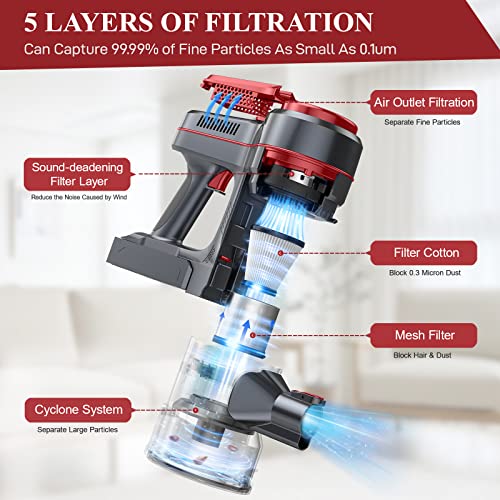 Effizientes und praktisches Filtrationssystem: Der beutellose Staubsauger ist mit einem ultrafeinmaschigen HEPA-Filter ausgestattet, der 99,9% bis 0,3 μm Partikel effektiv filtern kann, um den Motor zu schützen und Sauberkeit zu gewährleisten. 1,2-Liter-Staubsammeleimer mit großem Fassungsvermögen, einzigartiges Knopfdesign, einfach mit einer Berührung zu entleeren, ohne schmutzige Hände.