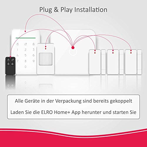 ELRO AS90S Home+ Smart Alarmanlage-WiFi-GSM Funktion-Bestens getestet-Mit Basisstation, Bedieneinheit, Bewegungsmelder, 3X Tür-/Fensterkontakt und Funk Key Ring, Komplettes Set