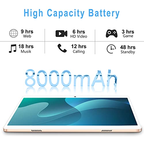 【8000 mAh & HD DISPLAY】 Tablet 10 Zoll haben einen eingebauten 8000 mAh Akku. Nachdem das Tablet vollständig aufgeladen ist, kann die Akkulaufzeit 6-8 Stunden erreichen (Büro, Lernen und Unterhaltung können gemischt werden). Unterstützt 2.4G Wi-Fi, Bluetooth-Dateiübertragung. Das Tablet verwendet ein hochauflösendes 2,5-D-IPS-Display mit einer Auflösung von 1280 × 800. Die HD-Kamera mit 5 MP vorne und 8 MP hinten macht es einfach, wundervolle Momente festzuhalten.