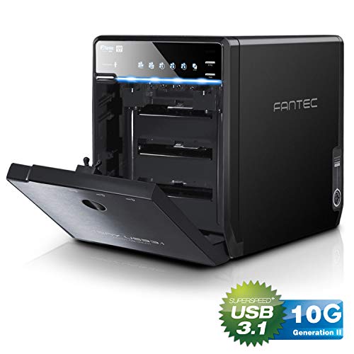 Externes 4-fach Festplatten Gehäuse für den Einbau von SATA SSDs und Festplatten, 2,5“ & 3,5“ (8,89cm & 6,35cm), SATA I/II/III, kein Kapazitätslimit