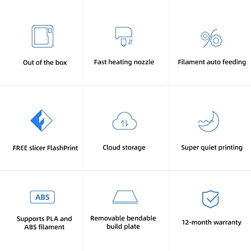 Patentierte, abnehmbare Extruder-Struktur/keine Nivellierung. Druck: Flashforge patentierte Extruder-Struktur, vollständig aktualisiert, stetige Filamentladung, Turbofan und Luftführung verbessern das Druckergebnis. Gebrauchsfertig, kein Nivellierdruck verhindert Druckunreinheiten durch Imporpernivellierung