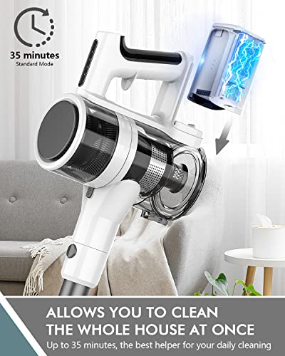 【2200 mAh abnehmbarer Akku mit großer Kapazität】Der kabellose Staubsauger hat einen abnehmbaren 2200 mAh Akku und der Akku bietet Überspannungs- und Überhitzungsschutz. 35 Minuten Laufzeit kann Ihnen helfen, das ganze Haus mit einer einzigen Ladung zu reinigen.