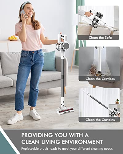 Fykee Kabelloser Staubsauger, Kabelloser Staubsauger mit 1,2 l Staubbecher und 80.000 PRM bürstenlosem Motor, Stabstaubsauger mit großem abnehmbarem Akku bis zu 35 Minuten Laufzeit