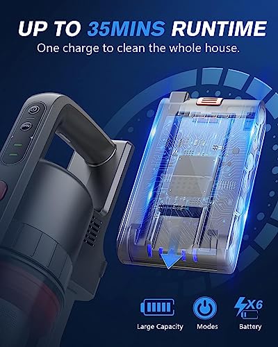 Abnehmbarer Akku mit großer Kapazität. Der kabellose Staubsauger hat einen abnehmbaren Akku und der Akku bietet Überspannungs- und Überhitzungsschutz. 35 Minuten Laufzeit könnte Ihnen helfen, das ganze Haus mit einer einzigen Ladung zu reinigen.