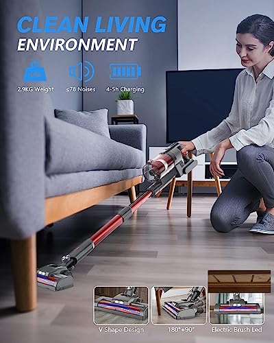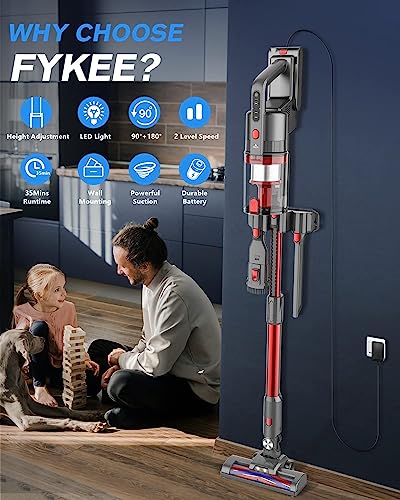 Fykee Kabelloser Staubsauger, Kabelloser Staubsauger mit 1,2 l Staubbecher und 80.000 PRM bürstenlosem Motor, Stabstaubsauger mit großem abnehmbarem Akku bis zu 35 Minuten Laufzeit
