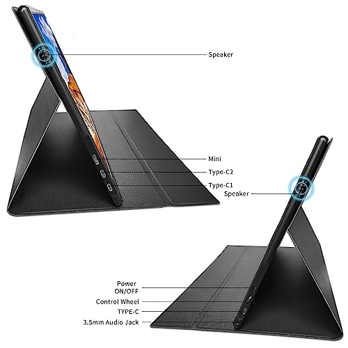 PU-LEDERTASCHE: Die Hülle besteht aus PU-Leder, das einen hervorragenden Schutz für den gesamten Monitor bietet und in verschiedene Positionen geklappt werden kann. Auf der Rückseite des Monitors ist eine VESA-Halterung (75 x 75 M4) integriert, die an der Wand oder auf dem Schreibtisch montiert werden kann.