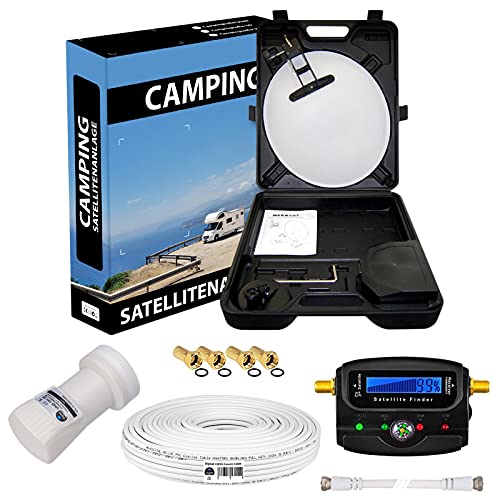 Hochwertige Camping Sat Anlage für ein Teilnehmer für den Empfang von ASTRA oder Hotbird Sender im besten Qualität. Auch für FULL HD 3D Ultra HD geeignet. Wegen kleiner Größe hat weniger „Schlechtes Wetter“ Reserve, dafür bestens passt für Camping oder mobilen Einsatz oder da wo Einsatz von größeren Spiegel verboten oder eingeschränkt ist. Im Set sind mehrere Befestigungsmöglichkeiten. Spiegel besticht durch hochwertige Beschichtung und sehr stabilen Rückenteil. Opticum Single LNB ist bekannt für sehr guten Empfang. Das Kabel HQ-135 ist sehr hochwertig und sowohl für innen als auch für Außenbereich geeignet. IM SET: Digitaler Satfinder inkl.Anschlusskabel mit LED Anzeige und Ton. Anleitung auf Deutsch. Somit sind Sie immer für spontanen Einsatz bestens ausgerüstet sind.