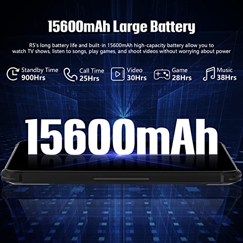 【15600mAh Akku mit großer Kapazität】R5 hat einen eingebauten Super 15600mAh Akku. 900 Stunden Standby-Zeit, 25 Stunden Sprechzeit. Menschen, die Camping, Wandern und Abenteuer mögen, können Songs spielen, während sie mit Freunden chatten. Wenn Sie eine wunderschöne Landschaft sehen, können Sie jederzeit Bilder oder Videos aufnehmen oder über FaceTime mit Familienmitgliedern teilen, ohne sich Gedanken über die Akkuleistung machen zu müssen.