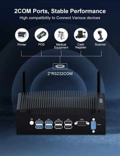 【Kleine Größe und mehrere Funktionen】 Die Größe des lüfterlosen Industrail-PCs:17cm(6.70inch)*12.6cm(4.96inch)*5.8cm(2.28inch), net weight 1.1kg(2.42lb)mit VESA-Halterung, Montagehalterung und Wandmontage. Der lüfterlose i5 Windows 10 Pro Mini-PC ist kompakt, hilft Platz zu sparen und ist leicht zu transportieren, obwohl er kein dickes Computergehäuse hat. Unterstützt RAID0/RAID1,RTC,Wake On Lan,Auto Power On,PXE.