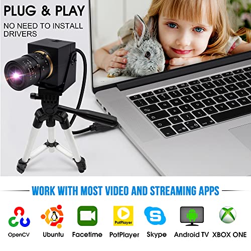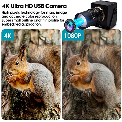 Breiter Anwendungsbereich: 4K-USB-Kamera. Es ist eine Nahaufnahme- oder Überwachungskamera für eine industrielle Anwendung, Nah- oder Überwachungskamera für eine industrielle Anwendung, variabler Fokus, USB-Kamera zum Aufnehmen der Vogelfütterung, halten Sie die Aufnahme in Schleife, besonders für einen zufriedenstellenden Fokus im Freien.