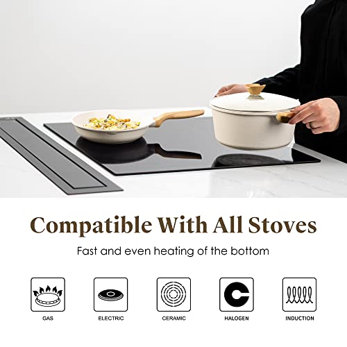 🎀【Healthy Kochgeschirr Set】 Die Kochfläche besteht aus ungiftigen Materialien. Dies ist eine bleifreie und cadmiumfreie Antihaftbeschichtung, die mehr als 10.000 Verschleißtests bestehen kann. Die einzigartige dreischichtige Antihaftbeschichtung macht diese Töpfe und Pfannen eine ausgezeichnete Leistung und kann langlebig Antihaftbeschichtung sein, selbst wenn Sie sie häufig jeden Tag verwenden, können sie immer noch leicht mit verschiedenen Situationen umgehen