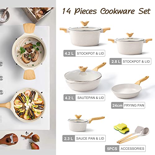 🎀【Spezielles Kochgeschirr Geschenk】 ilimiti ist bestrebt, kostengünstiges Kochgeschirr zu schaffen. Die Kochgeschirr-Sets wurden in allen Aspekten verbessert, einschließlich der Haltbarkeit der Antihaftbeschichtung, der Verbindungsstärke des Griffs, des Bodenraums und der Dicke der Induktionsbasis. Das Set enthält die am häufigsten verwendeten Töpfe und Pfannen in der Küche und ist in einer schönen Geschenkbox verpackt, die sich auch sehr gut als Geschenk eignet