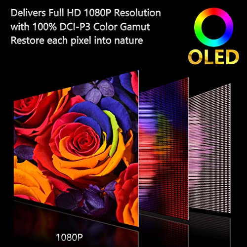 【OLED Portable Monitor-Real Color Screen】Der OLED Bildschirm mit einer Auflösung von 1920 x 1080P bietet ein hervorragendes Erlebnis beim Ansehen von Filmen und Spielen als IPS-Monitore. Er bietet 400nits Helligkeit, 10-Bit-Farben, ein Kontrastverhältnis von 100000:1 und HDR, das Ihnen ein echtes Schwarz und lebendige Bilder zeigen kann.
