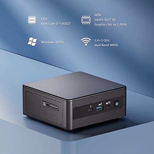 Leistungsstarker und effizienter Intel NUC 11 Mini PC: Intel NUC 11 Mini PC mit dem neuesten Core i7-1165G7 Prozessor (12 MB Smart Cache, up to 4,70 GHz) bieten überragende Leistung mit bis zu 4 Prozessorkernen, 8 Threads und ist eine ideale Lösung für Home-Entertainment und geschäftliche Anwendungen.