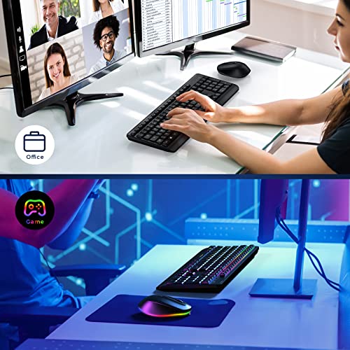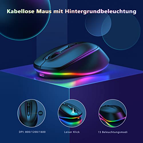Tastatur Maus Set Kabellos Beleuchtet: Diese beleuchtete Tastatur und Maus verfügt über eine 7-farbige, schillernde Hintergrundbeleuchtung mit 3 einstellbaren Helligkeitsstufen, die Ihre Arbeit und Ihre Spiele interessanter macht und Ihnen eine bequeme Nutzung bei schwachem Licht ermöglicht. (Hinweis: Um eine bessere Hintergrundbeleuchtung zu erhalten, verwenden Sie bitte die Hintergrundbeleuchtung bei Nacht).