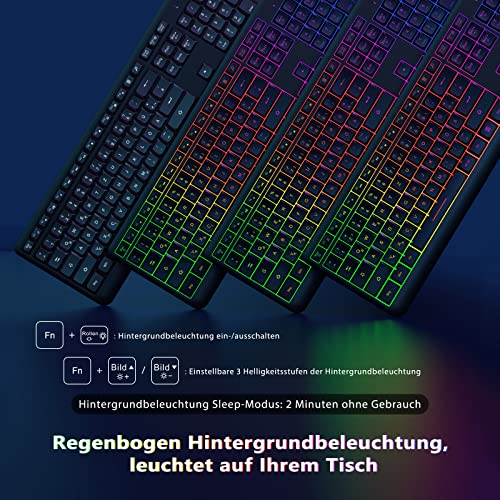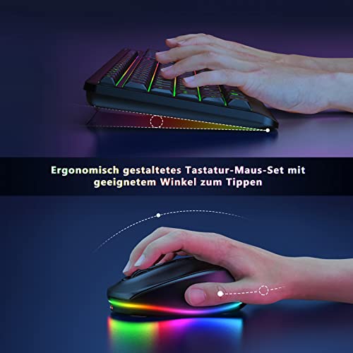 Kabellose Maus Tastatur Beleuchtet, seenda Beleuchtete Tastatur und Maus Aufladbar, 2.4Ghz Maus Tastatur RGB DE QWERTZ Funktastatur mit Maus Beleuchtet Nur für Windows, Schwarz