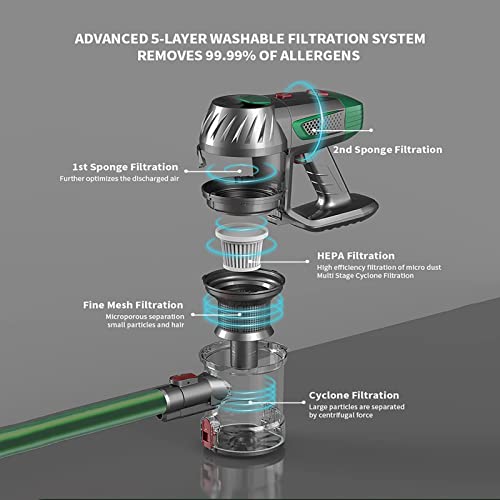 Dreifaches Filtrationssystem: Mit dreifacher Filtration, Staub, Tierhaare und kleine Partikel können effektiv gefiltert werden. Der aufgenommene Schmutz wird im Staubsammelfass eingeschlossen, um sekundäre Verschmutzung zu vermeiden. Der Schmutz kann durch Öffnen des Staubsammelfass mit einem Klick entfernt werden. Entfernt effektiv mehr als 99 % der Staubpartikel, bietet Ihnen und Ihrer Familie frischere Luft und eine sauberere Umgebung