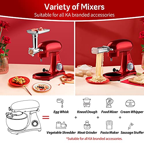 【MEHRERE BEFESTIGUNGEN UND ANTI-SLIP-DESIGN】Jeder Metallküchenmischer ist mit Teighaken, Flachmischer, Drahtpeitsche und Gießplatte ausgestattet, um Verwechslungen beim Knetvorgang zu vermeiden. Er ist einfach zu installieren und aus Edelstahl zu entfernen. Geeignet für alle klassischen Zubehörteile. Diversifizieren Sie Ihre Koch- und Backfähigkeiten, indem Sie Zubehör wie Nudelmaschine, Entsafter, Lebensmittelmühle, Kekspresse, Gemüseschneider usw. hinzufügen.