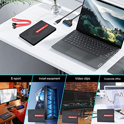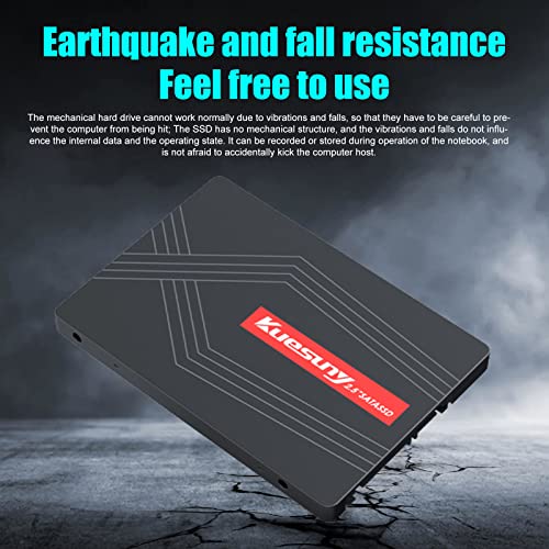 Unglaubliche Geschwindigkeit und absolute Zuverlässigkeit: Kuesuny ist solide State verbessert die Reaktionsfähigkeit Ihres bestehenden Systems mit unglaublichen Boot-, Lade- und Dateiübertragungszeiten im Vergleich zu mechanischen Festplatten.Angetrieben von einem Controller der neuesten Generation zum Lesen und Mit Schreibgeschwindigkeiten von bis zu 560 MB/s und 510 MB/s ist diese SSD 300x schneller als herkömmliche Festplatten für höhere Leistung, extrem reaktionsschnelles Multitasking und ein schnelleres Gesamtsystem. Diese SATA ist auch zuverlässiger und langlebiger als eine Festplatte und mit Flash-Speicher ausgestattet.Da es keine beweglichen Teile gibt, ist die Ausfallwahrscheinlichkeit geringer als bei einer mechanische festplatte. Es ist außerdem kühler und leiser und seine Stoß- und Vibrationsfestigkeit macht es ideal für Notebooks und andere mobile Computergeräte.Diese interne SSD von Kuesuny mit 2,5 Zoll 2TB SATA bietet Ihnen den Platz, den Sie für Anwendungen, Videos, Fotos und andere wichtige Dokumente benötigen. Sie können Ihre Festplatte oder eine kleinere SSD durch dieses Laufwerk ersetzen, das groß genug ist, um alle Ihre Dateien zu speichern.