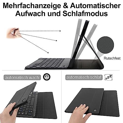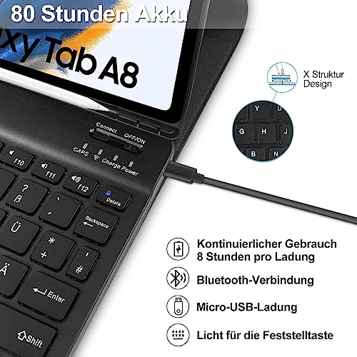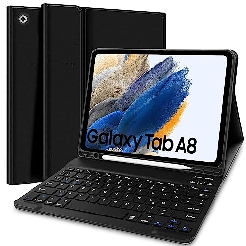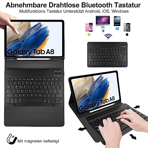 Lachesis Tastatur Hülle für Samsung Galaxy Tab A8 10,5 Zoll 2022 (SM-X200/X205/X207), Schutzhülle mit Pencil Halter Wireless Bluetooth Abnehmbare Tastatur (Deutsches QWERTZ), Schwarz