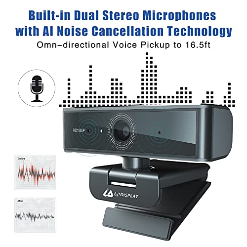 LPDISPLAY H705 Webcam Full HD, 1080P Webcam mit Mikrofon, USB-Webkamera mit Metallgehäuse, Business-Computer-Kamera mit Privcay-Abdeckung, für Online-Klasse, Zoom-Meeting, Skype, Facetime-Teams, schneller Autofokus, Full HD, 1080P, USB, Web-Computerkamera, LPDISPLAY Metallgehäuse, Business-Webcam mit Dual-Mikrofon, versteckte Privcay-Abdeckung, AI-Rauschunterdrückungstechnologie, für Zoom/Skype/ Teams/Webex, Laptop MAC PC Desktop